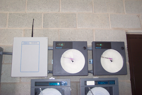 When the water reaches a certain level at each pump station, it begins getting pumped to the treatment plant. Each station has a 4-20 mA water flow rate signal (a Badger Mag Meters product), which begins sending information to the host radio when the station starts pumping sewage water. In the event that a pump malfunctions, each station is armed with a high wet well contact. Similar to the flow rate signals, this contact triggers an alarm at the water plant when the water reaches a certain level at each station. Its purpose is to indicate to someone at the water plant that something is wrong at a pump station. For a visual diagram of the radio set-up at each pump station, click on the link below: